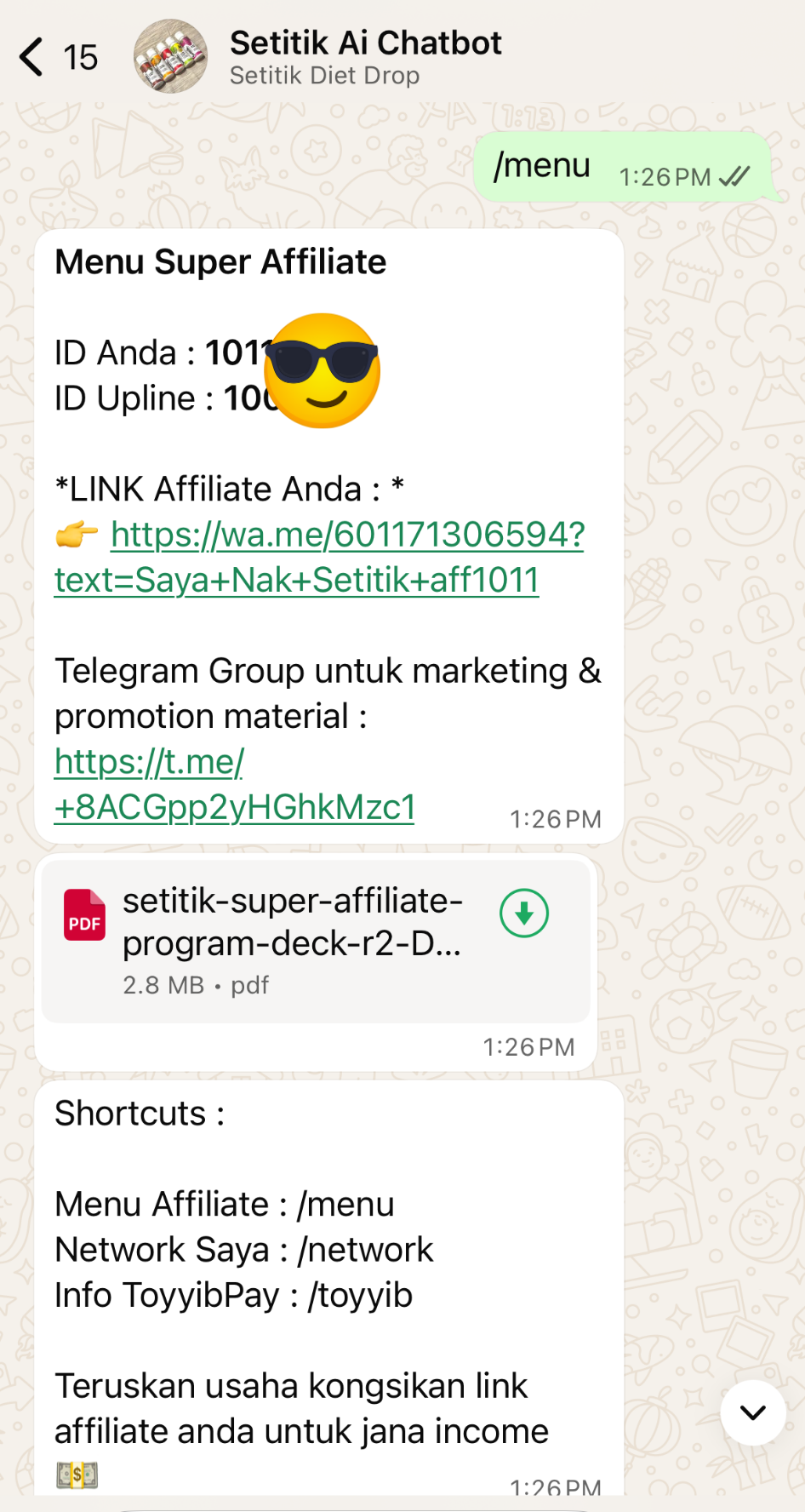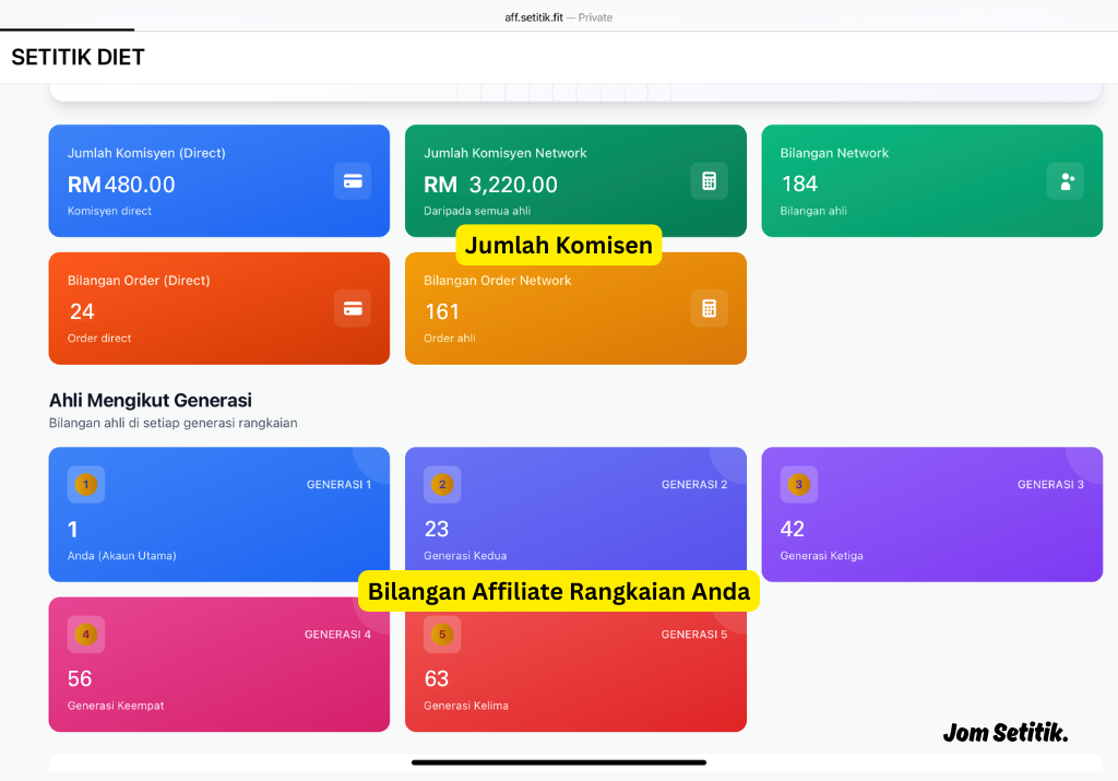 Unik Link Super Affiliate untuk promosi & jualan. Anda juga boleh semak laporan jualan, acces ke dashboard Setitik, maklumat lain mengenai Setitik.