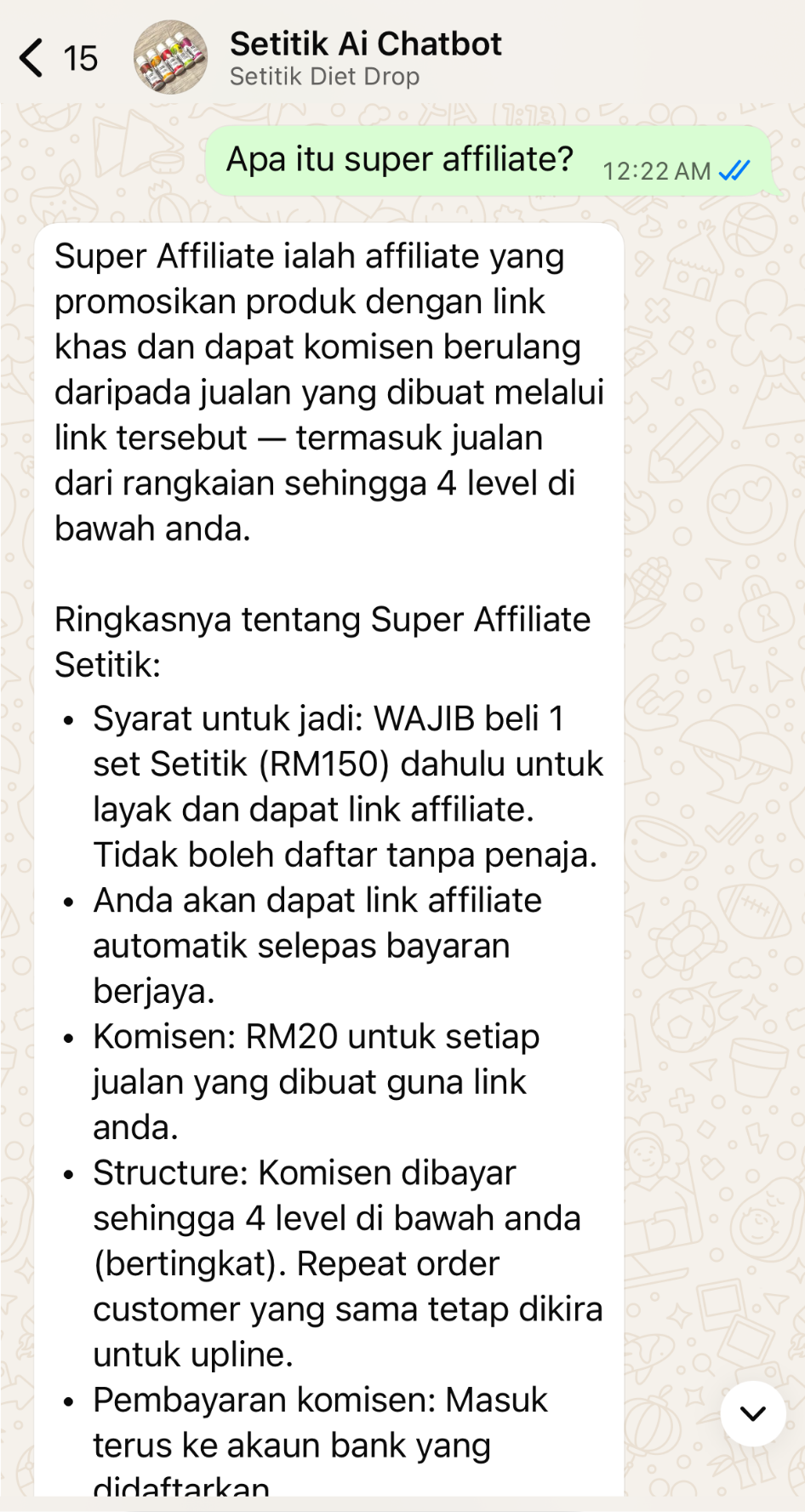 Hanya RM179 (1 set = 6 botol). Sekali beli, terus jadi Super Affiliate seumur hidup.