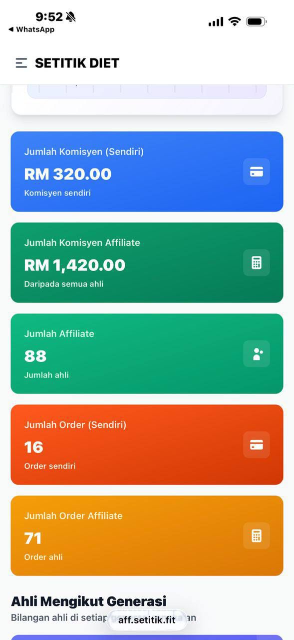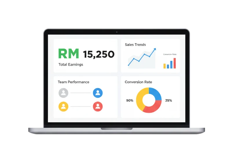 Pantau jumlah jualan dan prestasi team affiliate anda dalam satu tempat. Ringkas, jelas, dan mudah faham. → Semua data bisnes dihujung jari.