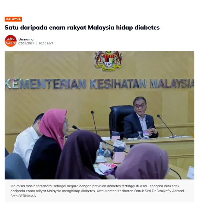 Diabetes bukan sekadar penyakit — ia “silent killer” yang boleh membawa kepada sakit jantung, buta, buah pinggang rosak.